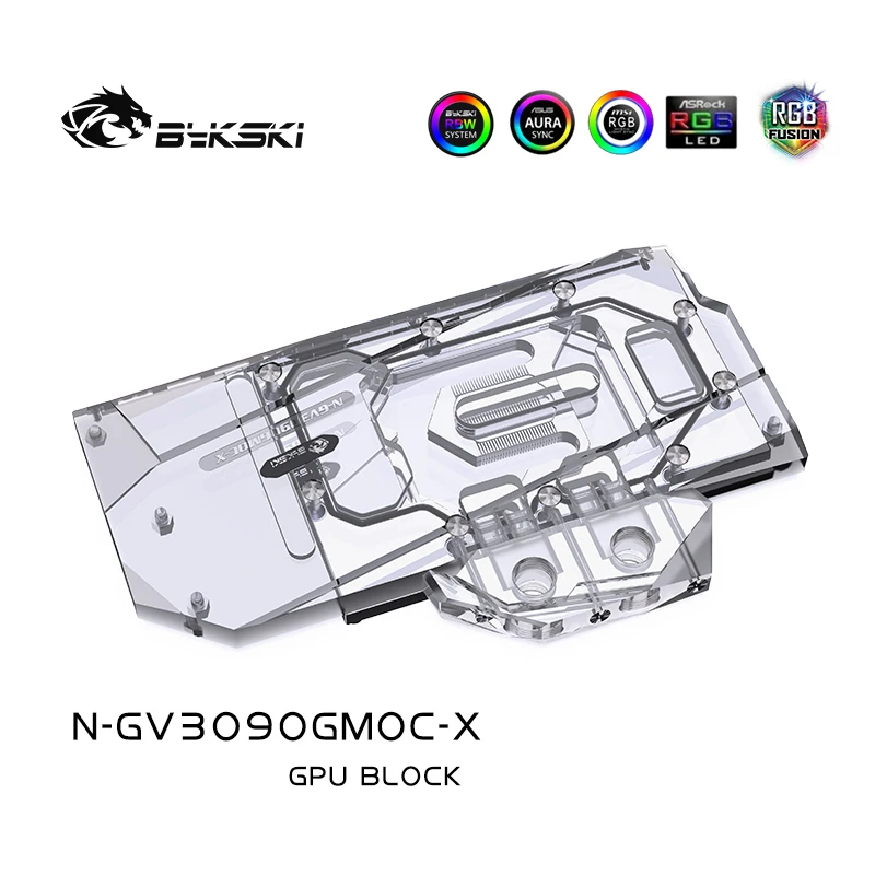 Product Name: تستخدم كتلة الماء من Bykski للألعاب GIGABYTE RTX 3080 OC 3X 10G / RTX3080 / 3090 EAGLE OC 24G/كتلة النحاس/اللوحة الخلفية RGB AURA
