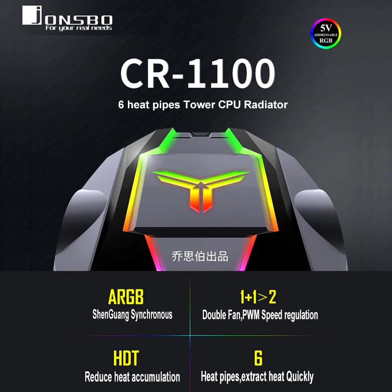 Product Name: جونسبو وحدة المعالجة المركزية مسند تبريد للاب توب مدمج به مكبر صوت مروحة الكمبيوتر CR1100 برج 6 أنابيب الحرارة PWM 4Pin بالوعة الحرارة إنتل LGA 775/1150/...