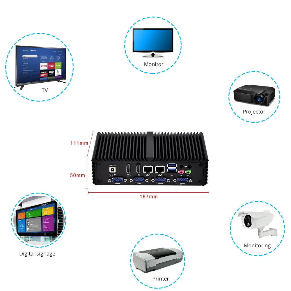 Product Name: بدون مروحة اللوحات الأم جهاز كمبيوتر صغير إنتل كور I5 دعم Aes-Ni ويندوز لينكس المزدوج جيجابت إيثرنت 6 * RS232 6 * USB X86 كمبيوتر مصغر