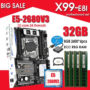 Special Offer JINGSHA X99 E8I مجموعة اللوحة الأم مع E5 2680V3 و 4*8GB DDR4 2400MHZ ECC REG RAM NVME M.2 USB3.0 ATX و HDMI إلى VGA خط Discount 26% Today!