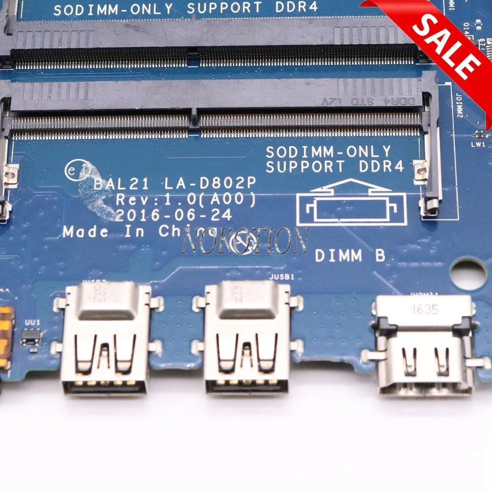 Product Name: NOKOTION N-081YW5 081YW5 81YW5 BAL21 LA-D802P اللوحة الرئيسية لديل انسبايرون 15 5567 اللوحة الأم للكمبيوتر المحمول I7-7500U DDR4 مختبرة بالكامل