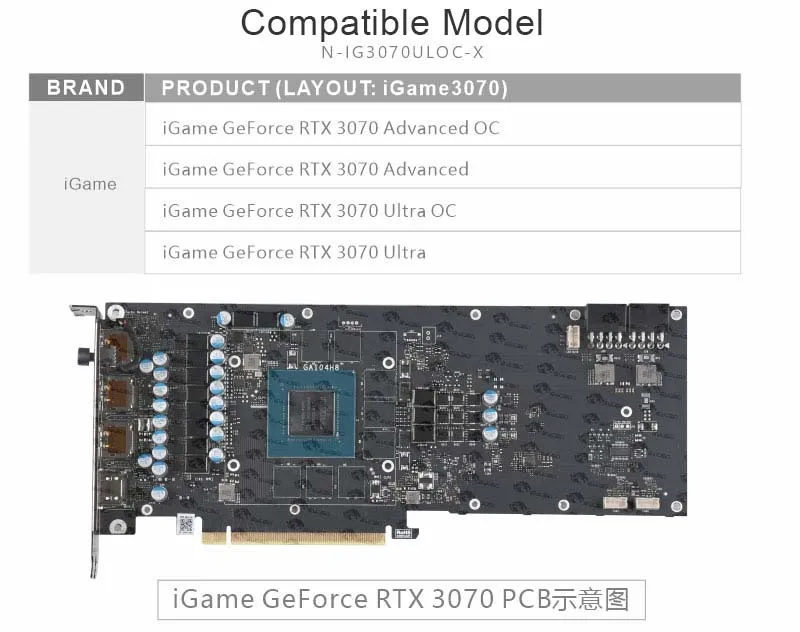 Product Name: Bykski استخدام كتلة المياه ل الملونة IGame RTX 3070 المتقدمة OC/RTX 3070 الترا OC GPU بطاقة/غطاء كامل النحاس المبرد كتلة