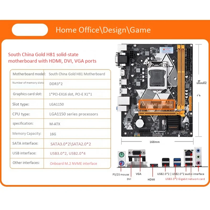 Product Name: HUANANZHI H81 اللوحة M-ATX LGA 1150 I3 I5 I7 E3 DDR3 1333/1600MHz 16GB M.2 SATA3 USB3.0 VGA DVI HDMI اللوحة