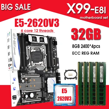 Special Offer JINGSHA X99 E8I X99 اللوحة الأم مع إنتل سيون E5 2620 V3 مع 4*8G DDR4 غير ECC الذاكرة كومبو مجموعة NVME SATA 3.0 USB Discount 28% Today!