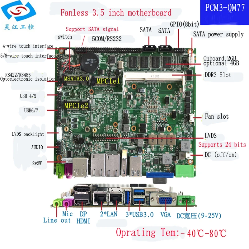 Product Name: 4Gb Ram إنتل كور I7-3537U المعالج جزءا لا يتجزأ من اللوحة الرئيسية متعددة العرض الناتج 2 اللوحة الأم الصناعية بدون مروحة إيثرنت