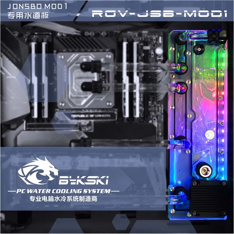 Product Name: Bykski PC مياه التبريد ممر مائي لوحة قناة لوحة متكاملة لجونسبو MOD1 Case ، RBW(5 فولت) RGV-JSB-MOD1