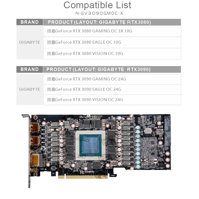 Product Name: Bykski استخدام كتلة المياه لجيجابايت RTX 3080 الألعاب OC 3X 10 جرام/3090 وحدة معالجة الرسومات بطاقة/غطاء كامل النحاس المبرد كتلة/A-RGB/RGB