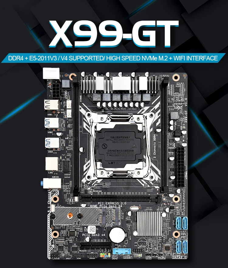 Product Name: JINGSHA X99GT Lga 2011-V3 اللوحة الأم دعم فتح توربو دفعة NVME SSD M.2 USB3.0 E5-2620V3 2678V3 CPU DDR4 خادم الذاكرة