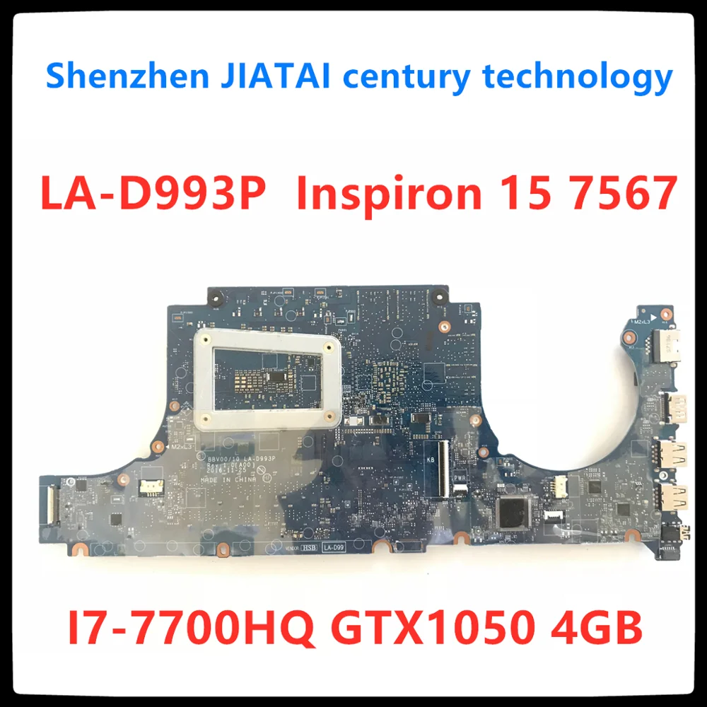 Product Name: LA-D993P اللوحة لديل انسبايرون 15 7566 7567 اللوحة I7-7700HQ GTX1050 4GB BBV00/10 LA-D993P CN-0JG23N اختبار 100%