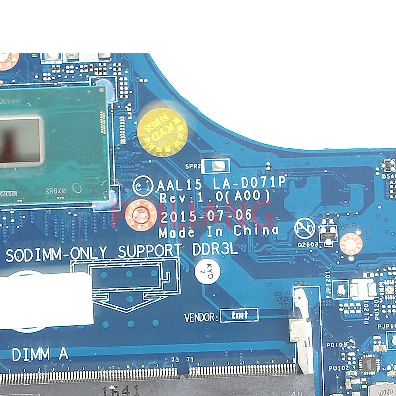 Product Name: اللوحة المحمول لديل انسبايرون 15 15-5559 قطعة اللوحة SR2EZ I7-6500U 0PX6JH AAL15 LA-D071P الكامل Tesed DDR3