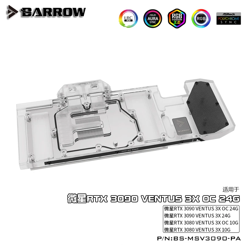 Product Name: بارو GPU كتلة المياه ل MSI RTX 3090/3080 VENTUS 3X OC 24G/10G ، 5V ، دعم جبل اللوحة الخلفية الأصلية ، BS-MSV3090-PA